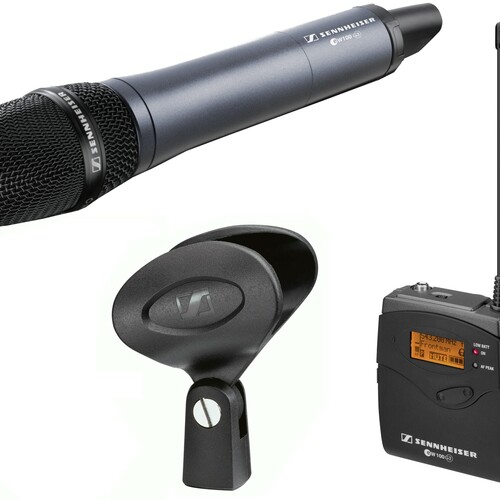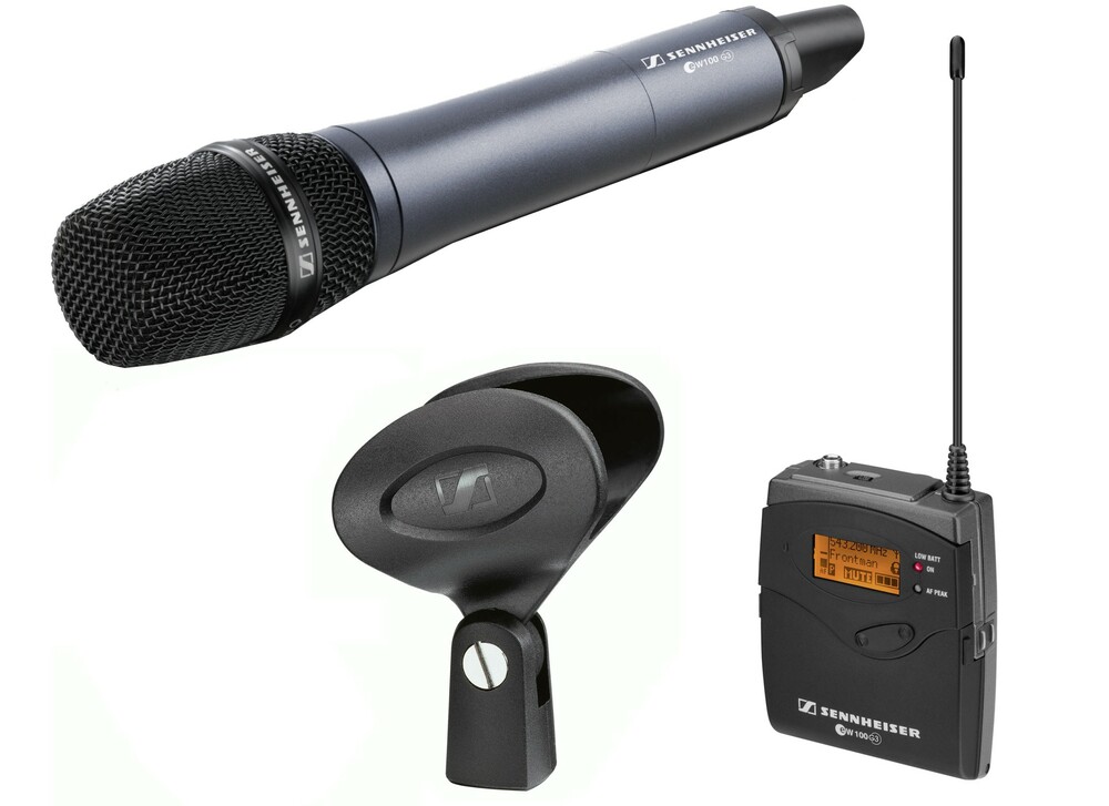- Sistema microfonico wireless con microfono palmare e ricevitore per videocamera